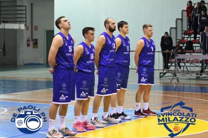 Continua a vincere la Svincolati Milazzo che espugna il parquet dello Sport Club Gravina, con un + 6 finale, conquistando la seconda posizione in classifica del girone azzurro. Avvio di gara tutto di marca milazzese, Sabeckis per primo ed a seguire Alberione e Vidakovic per il +6. Coach Marchesano chiama subito timeout , al rientro Gravina prova ad accorciare ma la Svincolati dopo una tripla di Vidakovic torna sul + 6 a 4’26 dalla prima sirena . Garello per i padroni di casa riporta sotto la sua compagine , è -3 sul punteggio di 11-14 . I ragazzi di Coach Trimboli tentano il nuovo allungo e così arriva la tripla di capitan Barbera per il + 6 . Gli Etnei trascinati da Garello e Barbera si riportano sul -3 a 2’30 dal termine del primo periodo , saranno due realizzazioni consecutive degli ospiti con Barnaba a chiudere i primi dieci minuti di gioco sul punteggio di 18-23 . Il secondo quarto si apre con il canestro di Sortino che porta sul -3 Gravina . Tocca a Sindoni con un gioco da 3 rispingere avanti Milazzo . Garello, autentico trascinatore dei suoi , opera il sorpasso a metà frazione. Il tabellone segna + 3 per lo Sport Club. I Milazzesi non demordono e riagguantano la nuova parità a 2’42 dal riposo lungo, nei minuti finali saranno invece i padroni di casa a colpire consecutivamente per il + 7, punteggio 47-40 Al rientro il duo Barnaba – Sabeckis realizza per il -2. Santonocito si mette evidenza per Gravina , ma il lItuano Sabeckis sale in cattedra riportando i bianco-blu ospiti avanti . Il tabellone segna 51-55 dopo i primi tre minuti di gioco del periodo . Equilibrio nel prosieguo, ma molti gli errori sotto canestro da ambo le parti. La terza sirena giunge sul + 3 per Alberione e compagni, punteggio 54-57. Ultimi dieci minuti, la Svincolati spinge forte ed ottimo è anche l’apporto di Bianchi che si fa valere nel pitturato realizzando quattro punti consecutivi , + 9 a 8’25 dalla sirena finale . L’ ottima fase difensiva degli ospiti respinge gli attacchi del Gravina , Milazzo tocca così anche il + 10 sul punteggio di 55-65 . Coach Marchesano prova a scuotere i suoi e dopo alcuni minuti di sostanziale equilibrio , riesce a riportarsi sotto . A 2’35 dalla fine dei giochi si è sul + 6 Svincolati , 65-71 . Garello non ci sta e si carica la squadra sulle spalle , Gravina non molla ed a 50 secondi dal termine va sul -1 . I mamertini però rimangono lucidi e cinici e nei secondi finali colpiscono dapprima con Sabeckis ed a seguire con il duo Barnaba -Sindoni mettendo la parola fine alle ostilità . La Svincolati Milazzo si aggiudica la gara sul punteggio finale di 70-76 . Adesso il via alla seconda fase con le sfide tra le compagini dei due gironi , azzurro e bianco .